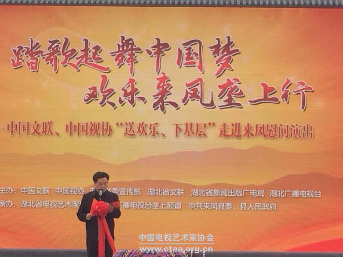 2014年11月15至17日,由中国文联、中国视协、中共湖北省委宣传部、湖北省文联、湖北省新闻出版广电局和湖北省广播电视台共同主办的“情系土家之源——送欢乐下基层”文艺志愿服务慰问演出及采风活动在湖北省恩施州土家族来凤自治县举办。中国视协分党组书记、驻会副主席兼秘书长张显,中国文联国内联络部巡视员李培隽,中国视协分党组成员、副秘书长张彦民,中国视协分党组成员、副秘书长范宗钗,湖北广播电视台总编辑、湖北省视协常务副主席雷刚,湖北省文联党组成员、副主席易熙君等出席本次活动。11月15日下午艺术家们走进来凤县三胡乡,慰问了当地的特困户,并与老乡们一起共跳土家族摆手舞。来凤县与湖南省、重庆市比邻,11月16日,蒋大为、卢奇、杜旭东、汪正正、吕薇等近三十位艺术家为来凤县及从湖南、重庆赶来的近两万名观众奉献了一台热情洋溢的精彩演出,受到当地群众的热烈欢迎。(来源:中国视协)