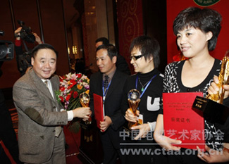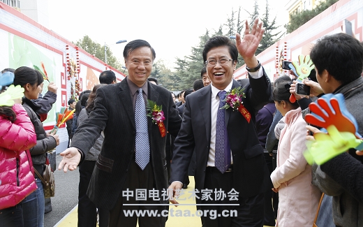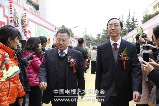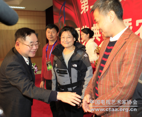 中国文联党组成员、书记处书记夏潮和中国文联副主席、中国视协主席赵化勇出席第三届新农村电视艺术节颁奖晚会