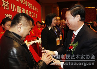 中国文联副主席、中国视协主席赵化勇和中国农业电影电视中心党委书记、主任傅玉祥出席第三届新农村电视艺术节颁奖晚会