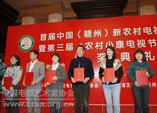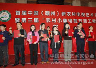 21日上午,中国视协、江西省文联、赣州市政府举行了首届中国(赣州)新农村电视艺术节暨第三届农村小康电视节目工程颁奖典礼。在对农电视栏目中,《乡村大世界》获得特别奖,《乡村季风》等20个栏目获得最佳奖,《漫步新农村》等22个栏目获得优秀奖;在电视专题片中,《小山村里的大事业》等20个专题片获得最佳奖,《“破地”之战》等31个专题片获得优秀奖,《鸭绿江的民俗文化奇葩》等43部专题片获得好作品奖;在农村题材电视剧中,《黑脸》等 10部电视剧获得长篇最佳作品奖,《牛玉琴的树》等10部电视剧获得中短篇最佳作品奖,《别拿豆包不当干粮》等20部电视剧获得长篇优秀作品奖,《李小娥分家》等6部电视剧获得中短篇优秀作品奖,《柳树屯》等22部电视剧获得长篇好作品奖,《咱们村里的热闹事》等10部电视剧获得中短篇好作品奖;在风采才艺展示中,《二鬼摔跤》等11个系列才艺、《男子盘鼓表演》等3个节目获得一等奖,《翠竹嬉春》等4个节目获得二等奖,《崇明扁担戏》等7个节目获得三等奖。