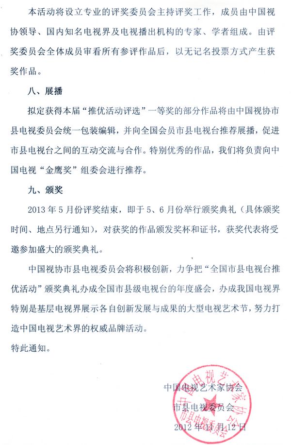 2、企业分会对各单位上报名单严格审查,无疑义者将上报中国视协批准备案。
